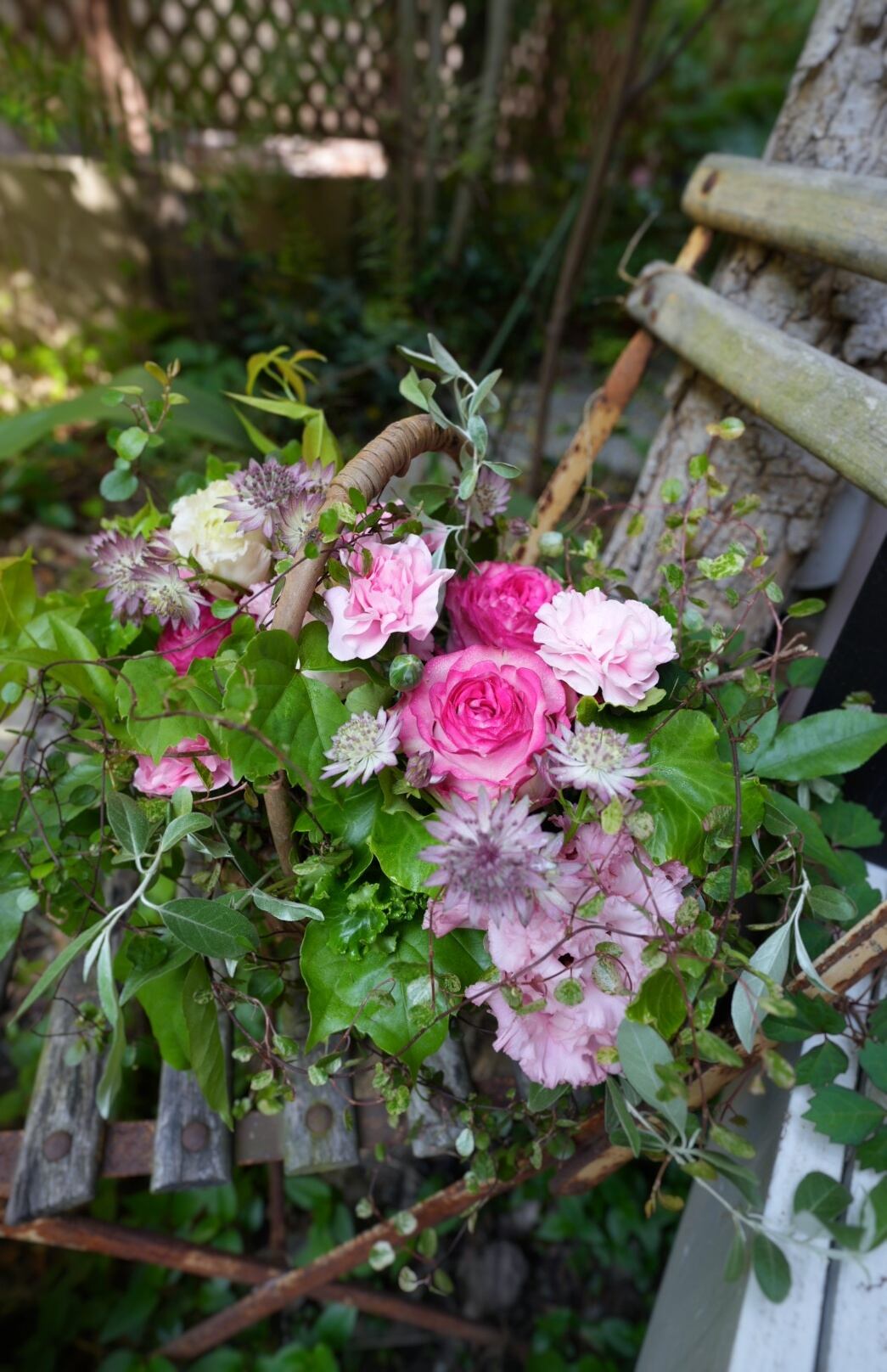 母の日のバラとカーネーションの特別な花かご